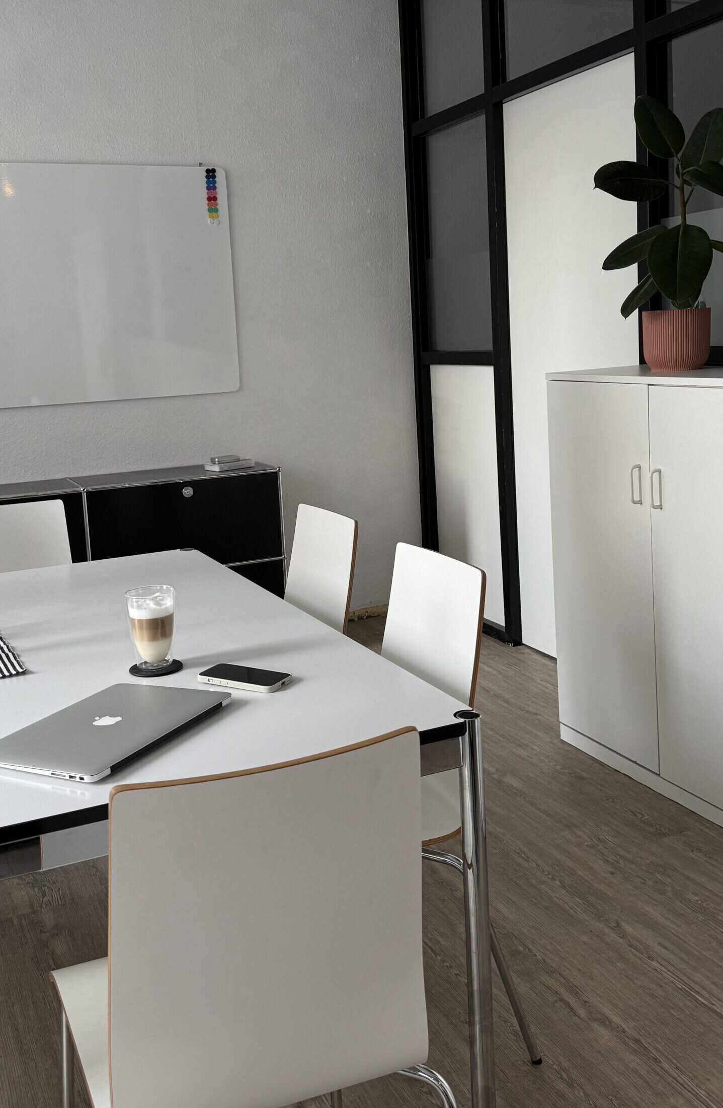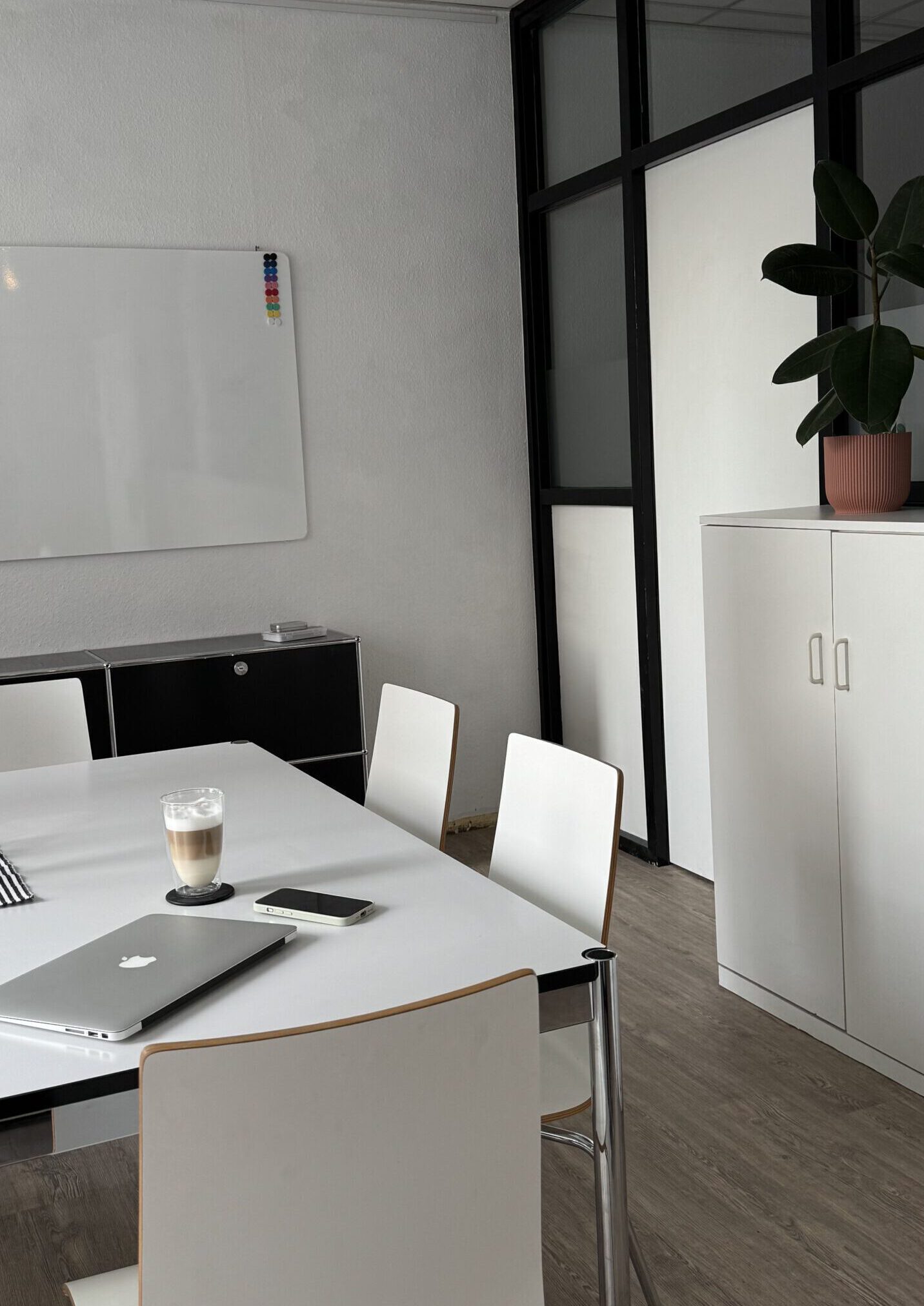 Unser Meeting Room S bietet Platz für bis zu 8 Personen. Ausgestattet mit einem großen Arbeitstisch bietet er viel Platz für kreative Ideen, Gruppenarbeiten und Besprechungen. Im Raum enthalten ist ein großes Whiteboard sowie weitere kleine Whiteboards mit Zubehör.